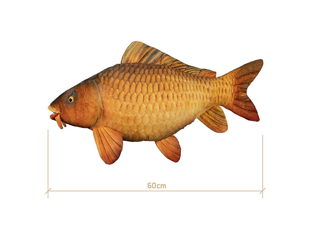 Delphin CARPY zaujme realistickým potiskem, který věrně zachycuje barvy a tvary kapra, takže působí téměř jako živý. Vyroben je z měkkého a příjemného materiálu, díky čemuž je ideální jako dekorace, tichý společník či jako netradiční a pohodlný polštář. Je to originální dárek, který potěší každého velkého i malého rybáře a fanouška přírody.