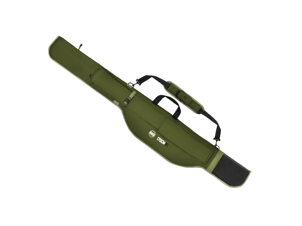 Pouzdro je na všech stěnách včetně předělovací přepážky plně polstrované 6mm měkkou výstelkou. Tím pádem nehrozí při transportu 2 prutů jejich vzájemné poškození. Obě vnitřní komory na pruty jsou fixovatelné pomocí suchého zipu na jejich vrchu.