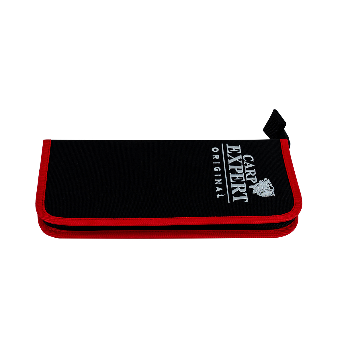 Značka CXP nabízí velmi pestrou škálu pomůcek k lovu nedravých ryb, kaprů. Toto oboustranné pouzdro na uskladnění návazců taky rozšiřuje tento segment. Pevnější provedení, vnější část je vyrobena z odolného materiálu s praktickým zipem. Po otevření můžeme do obou stran bezpečně uskladnit hotové návazce. Po stranách se nachází 2 x 10 ks špendlíků. Háčky musíme jednoduše zavěsit a potom koncové ouško upevnit pomocí špendlíků. Jednoduché a praktické řešení. Uvázané návazce dokážeme bezpečně a bez poškození dostat na vodní břeh tak, aby naše rybařina nezačala zamotaným návazcem.