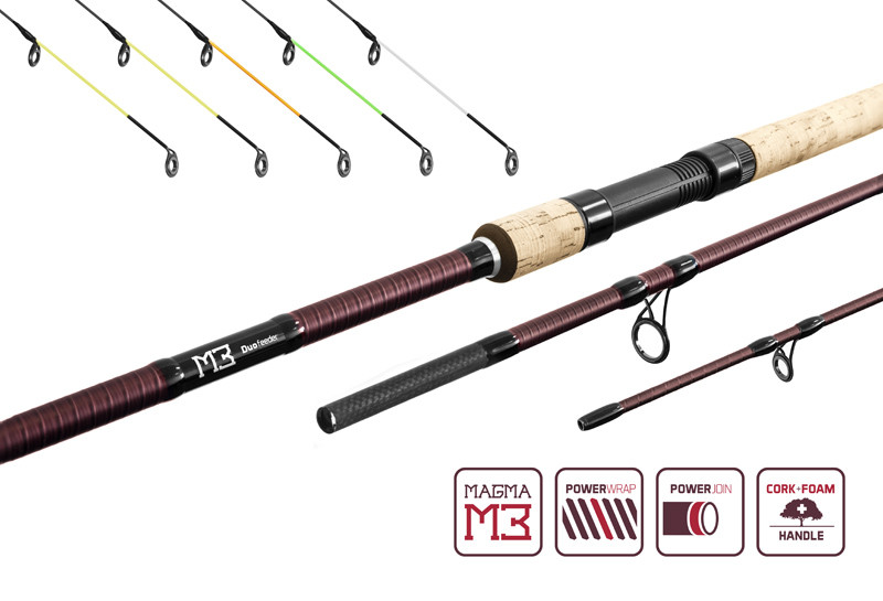 Řada vínově bordových prutů Delphin MAGMA M3 DUO je členem nejúspěšnější série feederových prutů s prodlužovacím dílem značky Delphin. Snažili jsme se zachovat všechno to, co dělá tyto pruty bestsellery, ale i přidat něco zcela nového, abychom opět posunuli výše pomyslnou laťku kvality, požitku z rybačky a spolehlivosti. Právě to stálo za zrodem vývoje technologie Delphin 2Power. Tato technologie se skládá ze dvou podsegmentů, a to PowerWrap a PowerJoin. Oba segmenty jsou aplikovány na každém modelu série MAGMA M3. PowerWrap si všimnete okamžitě při kontaktu s prutem. Jedná o dodatečné vinutí karbonu po celé délce prutu, kterým jsme dosáhli výrazného zvýšení pevnosti. Také zvyšuje odolnost vůči momentovému přetížení prutu. V praxi to znamená výrazně vyšší životnost prutu a snížení náchylnosti na mechanické poškození. Sekundárním aspektem tohoto vinutí je vizuálně velmi přitažlivý prvek strukturovaného blanku.