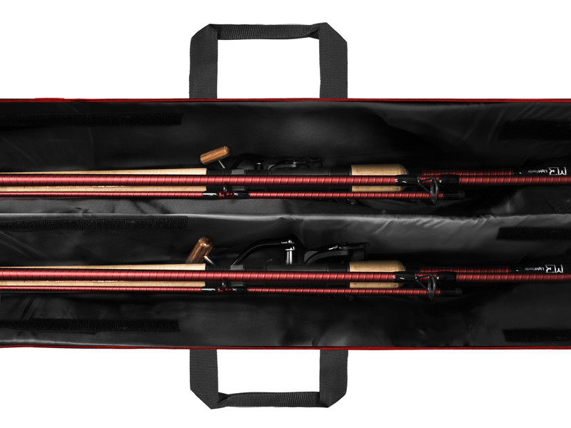 Pouzdro je na všech stěnách včetně předělovací přepážky plně polstrované 6mm měkkou výstelkou. Tím pádem nehrozí při transportu 2 prutů jejich vzájemné poškození. Díky rozšířené části pro uložení navijáků se dovnitř vejdou všechny standardně používané feedrové sestavy.