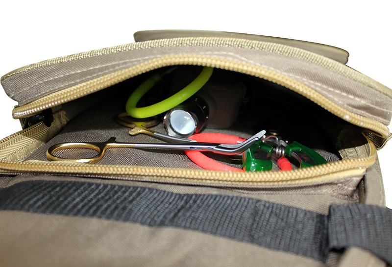 Na boční straně se nacházejí dvě kapsy (25x22x4cm), do kterých je možné uložit krabice s bižuterií, brýle, čelovky, kleště, signalizátory a kopec jiného příslušenství. Druhá strana pouzdra obsahuje extra dlouhou kapsu se zipem, která slouží například pro transport rybářského podběráku. Na něm jsou našita uložení na vidličky i se stahovací páskou. Toto pouzdro tak pojme většinu těžko skladného rybářského náčiní.