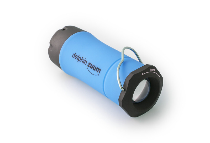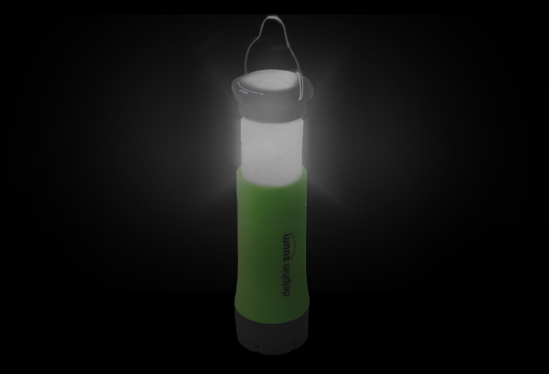 Příruční svítidlo, bez kterého se odteď neobejde žádná vaše vycházka k vodě. Delphin ZUUM je díky kompaktním rozměrům lehko přenosný a díky své multifunkčnosti přímo nenahraditelný společník za zhoršených světelných podmínek. Je ho možné použít jako klasické svítidlo do ruky, kdy světlo svítí přímým směrem z otočné hlavice. Pootočením je ale možné povytáhnout středovou část a udělat tak z baterky svítilnu. Tato svítilna sama stojí a navíc díky profilovanému drátěnému háčku ji můžete bez problémů i zavěsit. Tím ale výčet vlastností stále nekončí. Samotná LED dioda ve vnitřku má tři úrovně svícení: silné světlo, tlumené světlo a blikající stroboskop. Možnosti Delphin ZUUM jsou tedy nekonečné, od klasického ručního svítidla přes závěsnou svítilnu, světlo do bivaku, poziční světlo... ZUUM je nabízený ve 3 barevných provedeních těla: zelená, oranžová a modrá.