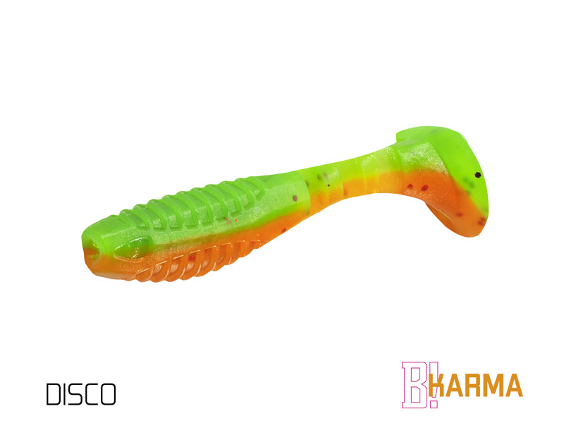 Design modelu KARMA jsme od počátku brali jako neklasické řešení klasického modelu. Cílem bylo vytvořit nástrahu se širokým záběrem použití, ale po našem. Již při prvním pohledu si můžete všimnout, že poměr velikosti těla k ocasu nástrahy je odlišný od běžného. Větší ocas nástrahy zapříčiňuje atypický pohyb nástrahy, který kromě kmitání ocasu přidává i jemné převalování tělíčka, což vytváří dojem zranitelného jedince. Tento pohyb je pro ryby nesmírně atraktivní a přináší vám nové možnosti v práci s nástrahou.