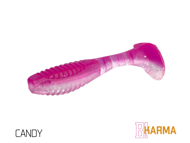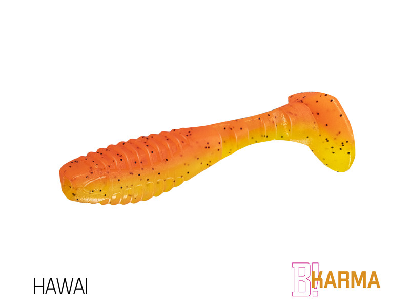 Design modelu KARMA jsme od počátku brali jako neklasické řešení klasického modelu. Cílem bylo vytvořit nástrahu se širokým záběrem použití, ale po našem. Již při prvním pohledu si můžete všimnout, že poměr velikosti těla k ocasu nástrahy je odlišný od běžného. Větší ocas nástrahy zapříčiňuje atypický pohyb nástrahy, který kromě kmitání ocasu přidává i jemné převalování tělíčka, což vytváří dojem zranitelného jedince. Tento pohyb je pro ryby nesmírně atraktivní a přináší vám nové možnosti v práci s nástrahou.