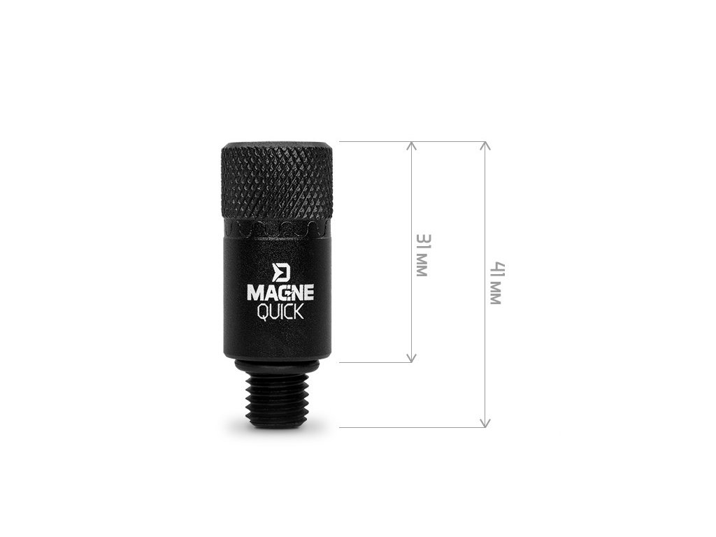 Inovativní rychlospojka, která byla důmyslně navržena a dlouhodobě testována vývojovým týmem značky Delphin. MagneQUICK funguje na principu extra silného magnetu uvnitř a systému výstupků a zářezů, které do sebe univerzálně pasují. Signalizátor si natočíte do vrchní části a spodní uchytíte do stojanu/vidličky. Následně obě části spojíte zakliknutím magnetu a sestava je připravena k použití. Po rybaření část se signalizátorem jednoduše rozpojíte jedním tahem a signalizátor uschováte pro transport. Odpadá tak dlouhé šroubování signalizátoru před každým rybařením. S rychlospojkou MagneQUICK jste připraveni okamžitě začít lovit.