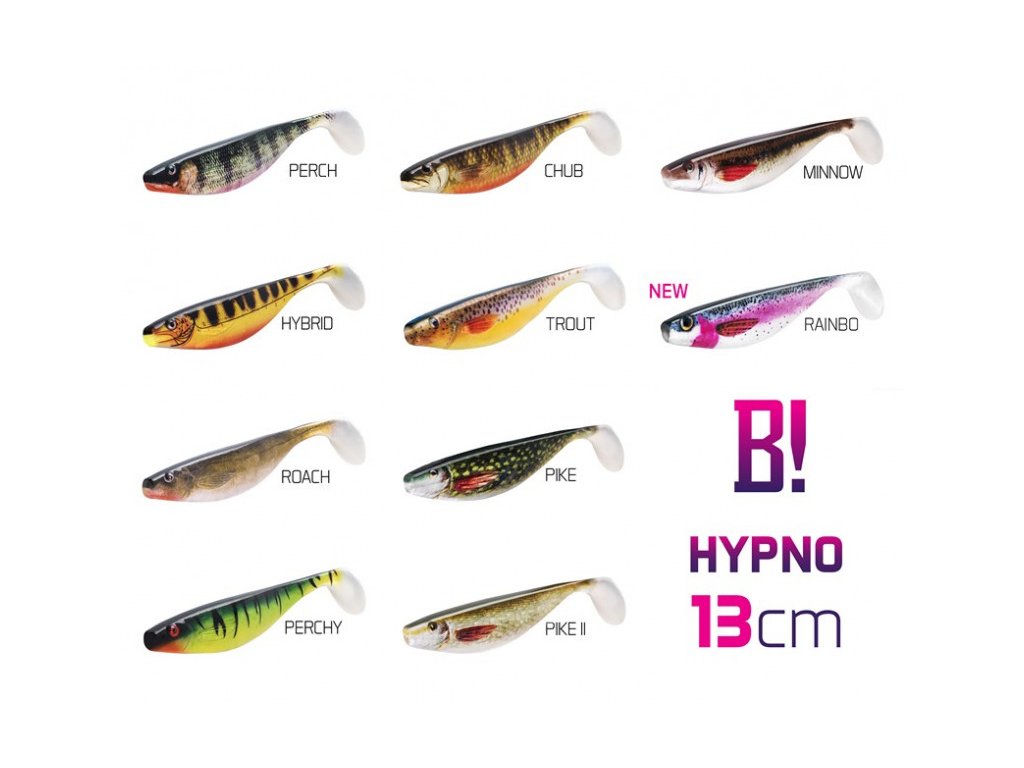 Nic nezůstává dlužná svému menu! Hypno je umělou nástrahou značky BOMB!, která má doslova hypnotizující účinky. Díky extrémně propracovaným proporcím a dokonalému barevnému provedení je tato nadrozměrná nástraha tím nejdokonalejším nástrojem pro oklamání vychytralých rekordních úlovků.