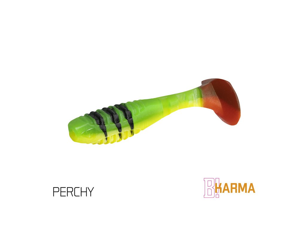 Design modelu KARMA jsme od počátku brali jako neklasické řešení klasického modelu. Cílem bylo vytvořit nástrahu se širokým záběrem použití, ale po našem. Již při prvním pohledu si můžete všimnout, že poměr velikosti těla k ocasu nástrahy je odlišný od běžného. Větší ocas nástrahy zapříčiňuje atypický pohyb nástrahy, který kromě kmitání ocasu přidává i jemné převalování tělíčka, což vytváří dojem zranitelného jedince. Tento pohyb je pro ryby nesmírně atraktivní a přináší vám nové možnosti v práci s nástrahou.