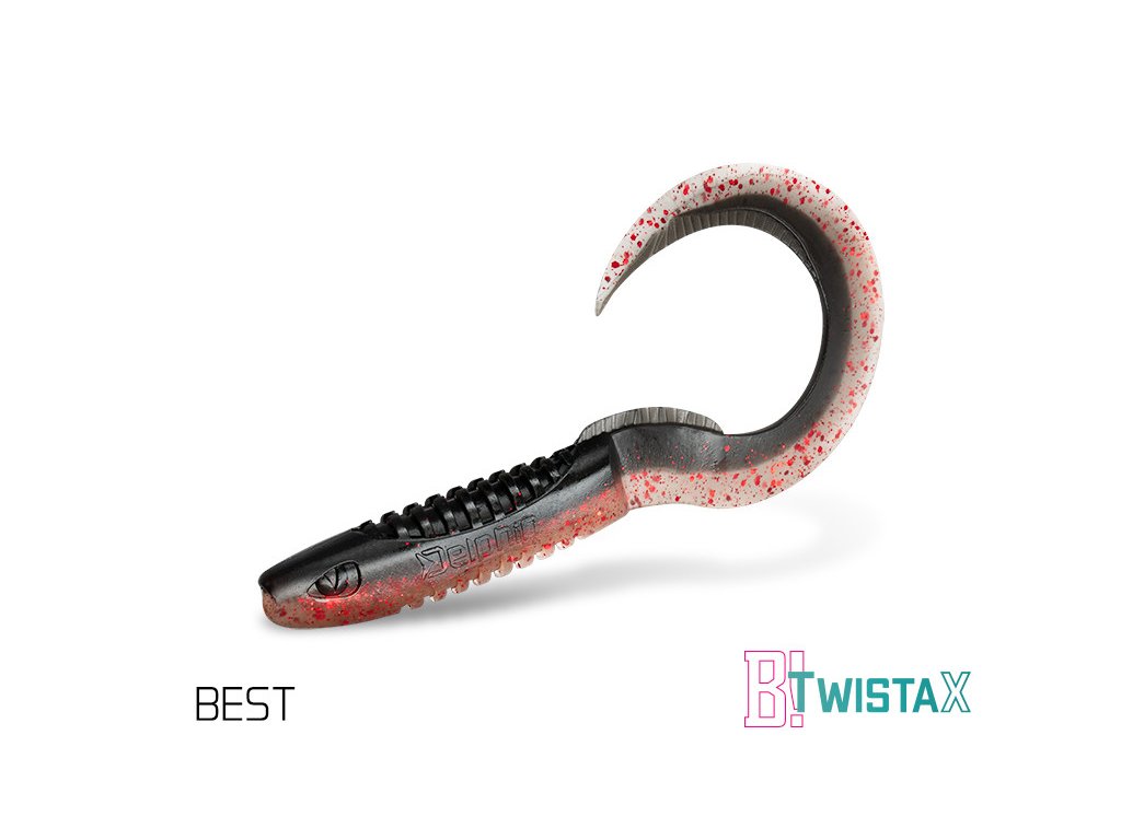 TwistaX Ealtail je nástraha na lov dravců z dílny značky Delphin, inspirovaná jednou z našich nejzáhadnějších ryb – úhořem. Tvar těla, který je extrémně štíhlý a dlouhý, způsobuje, že se ryba pohybuje jedinečným způsobem. S cílem napodobit ho, jsme nástrahu navrhli s extra dlouhým twistrovým ocasem, který vytváří jedinečné vlnění a zároveň bezvadně pracuje i při velmi pomalém tažení. Pohyb ocasu nástraze dodává neodolatelné vibrace, které vyprovokují k záběru nejednoho podvodního predátora. Oproti úzkému ocasu je tělo nástrahy dostatečně masivní pro bezproblémové nastražení na jigový háček nebo k připevnění přívlačové montáže. Tělo nástrahy obsahuje vroubky pro ještě větší vibrace a pro jednodušší nastražení na háček, kde si pomocí vroubků lze přiměřit vzdálenost, ve které bude háček vycházet z nástrahy. Výřez v přední části nástrahy umožňuje lepší dosednutí k jigové hlavičce.