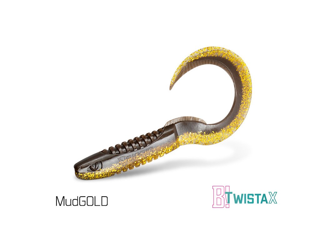 Umělá nástraha Delphin TwistaX Eeltail UVs 6cm / MudGOLD - 5ks